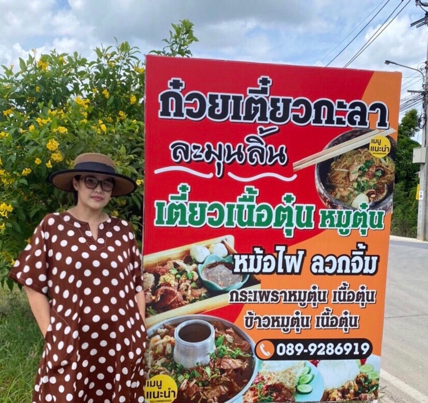 #อิ๋วชวนกิน ยืนอยู่ตรงป้ายหน้าร้านคะริมถนน พอขับรถเข้ามาจะเห็นป้ายนี้ตรงหน้าร้านคะ